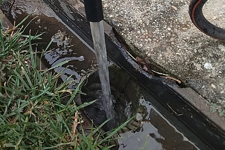 Szemléltetés céljából mintát veszünk a kiürülő folyadékból.